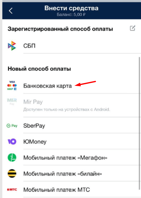 Способы пополнения счета